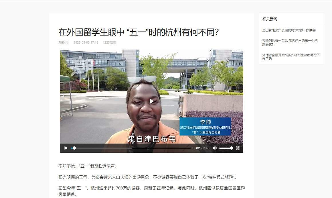 潮新闻记者特邀浙江科技学院留学生李帅,让这位外国友人带上镜头,来看看“五一”时的杭州有什么不同?