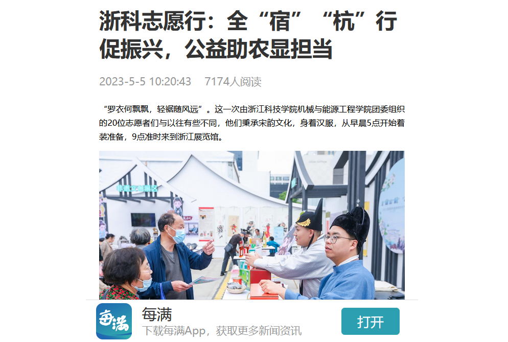 我校助农汉服志愿者受每日商报、每满客户端等媒体的关注。