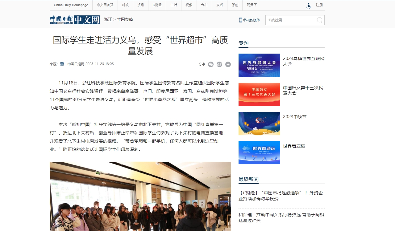 中国日报网:国际学生走进活力义乌,感受“世界超市”高质量发展