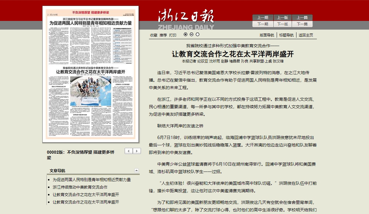 浙江日报:让教育交流合作之花在太平洋两岸盛开