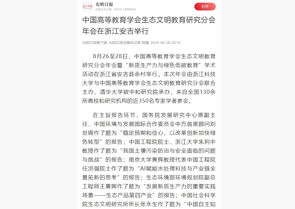 光明日报客户端:中国高等教育学会生态文明教育研究分会年会在浙江安吉举行