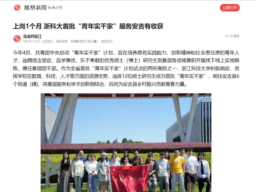 凤凰网·浙江:上岗1个月 浙科大首批“青年实干家”服务安吉有收获