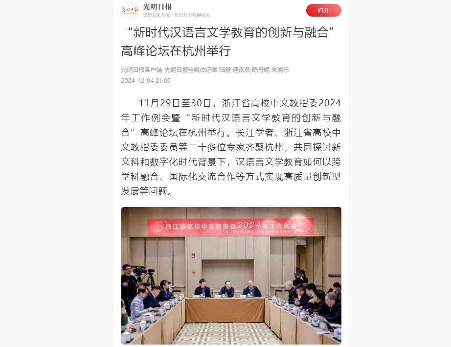 光明日报客户端:“新时代汉语言文学教育的创新与融合”高峰论坛在杭州举行