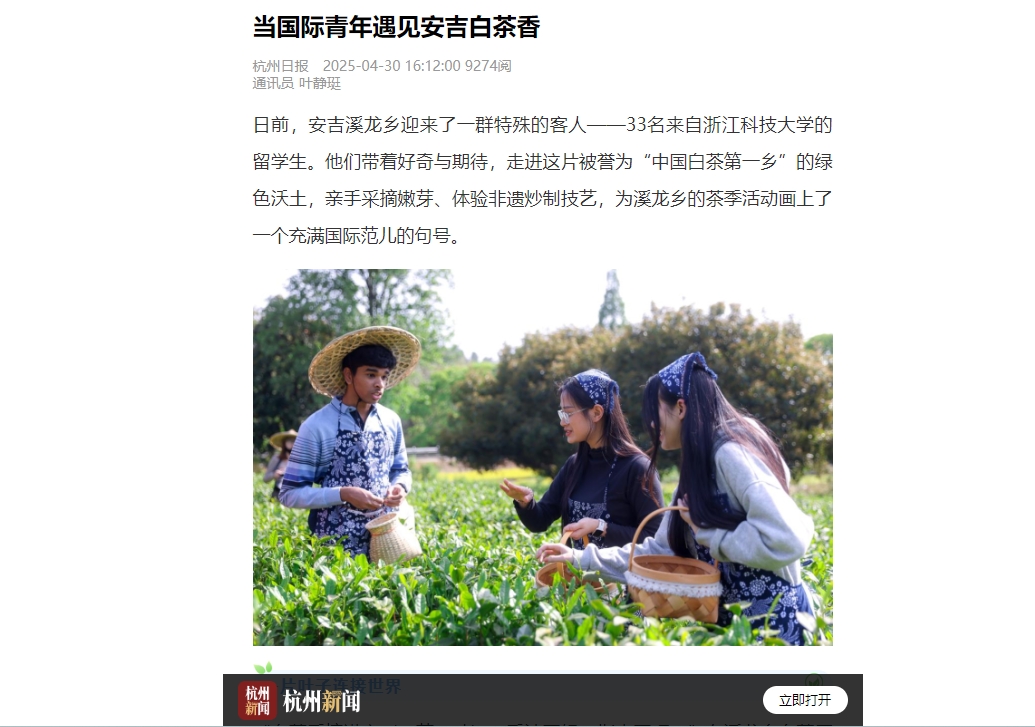 杭州日报:当国际青年遇见安吉白茶香