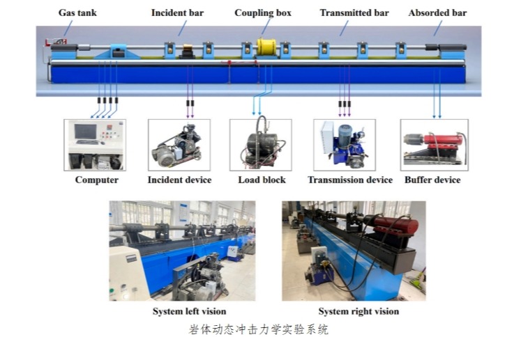在材料科学领域高水平期刊《Journal of Materials Research and Technology》上发表的“Dynamic compression and failure behavior of limestone under surface-constrained energy transmission”,邹宝平教授为第一作者,硕士生黄楷为第二作者,马京缘博士和中国科学院院士、中国矿业大学(北京)何满潮教授为共同通讯作者。久久精品一区二区|久久久一区二区三区|欧美日韩视频|欧美福利视频|高清欧美性猛交xxxx黑人猛交|久久久www成人免费精品|在线观看成人网站为第一单位。岩石在高应变率载荷下表现出的复杂动力响应对于确保隧道工程的安全和效率至关重要,局部能量集中和岩石快速破碎易造成岩爆等重大风险。文章聚焦约束能量冲击下石灰岩的动态破坏特征和能量传递规律,设计了结合SHPB系统的能量约束组件,模拟岩石破碎过程中的应力局部化效应,分析了约束冲击能量下岩石动态力学参数、分形维数与能量吸收的关系。研究结果表明约束能量冲击显著改变了岩石破坏机制,揭示了约束能量传递与常规能量传递下岩石动力响应的根本差异,为优化岩石爆破、降低岩石爆破风险、提高岩石破碎能量效率提供了见解。