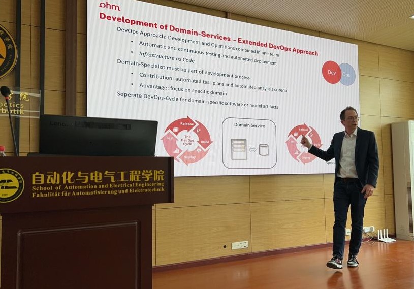 近日,电气学院第40期“和山控制论坛”举办。德国纽伦堡应用科学大学Christian Siegel教授与Frank Pohlau教授担任主讲嘉宾,围绕“数字孪生技术软件架构”及“教学与研究的互促模式”展开深度分享,吸引了近百名师生参与。